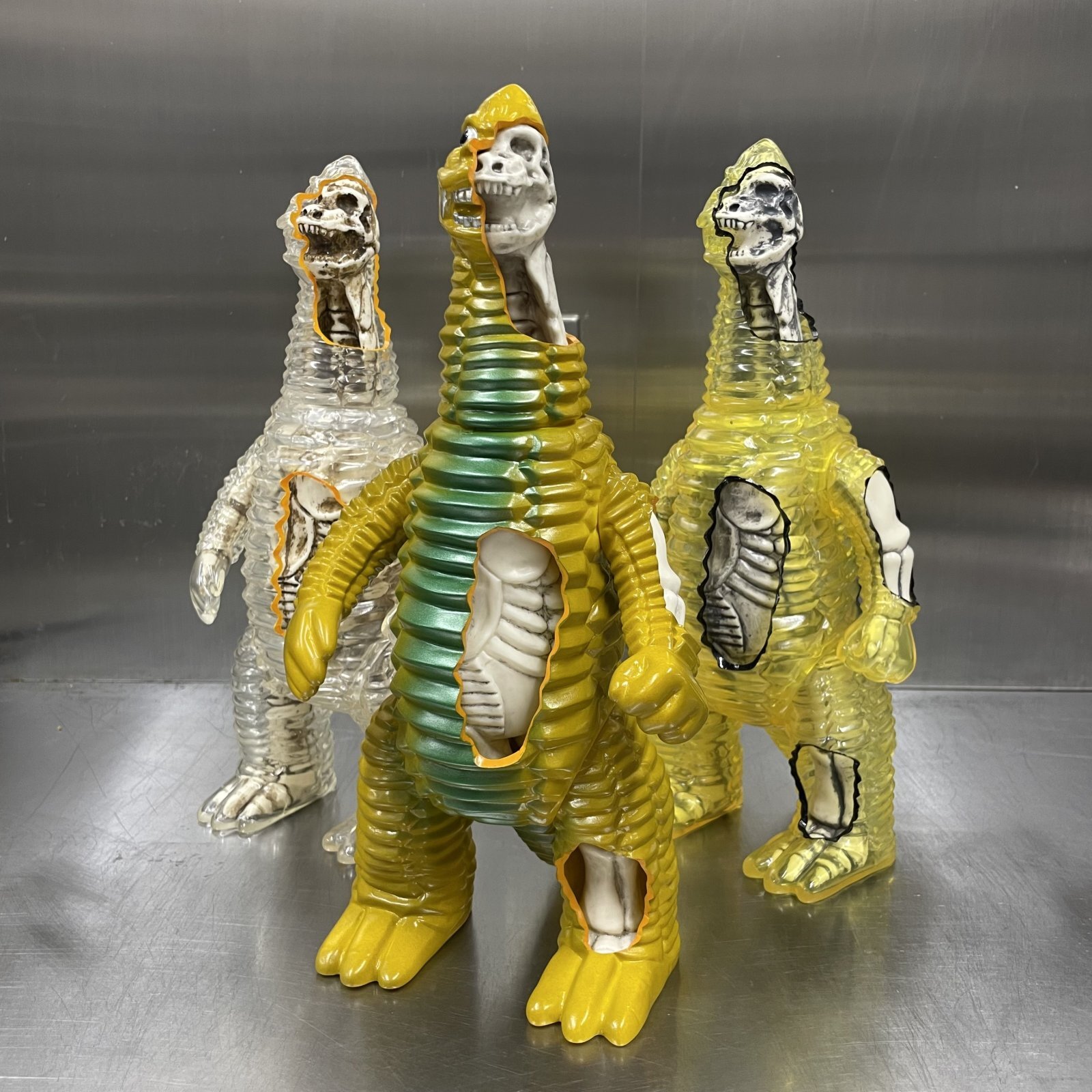 We are good at making “X-RAY” style, the inner skull is made of resin instead of Vinyl. We cut the part of the body so that you can see the skull inside directly and core fan would understand where this concept comes from.